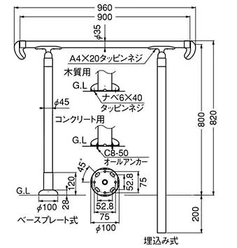 【 握り径(Φmm) 35 支柱径(Φmm) 45 長さ(mm) 900 支柱の高さ(mm) 800 】